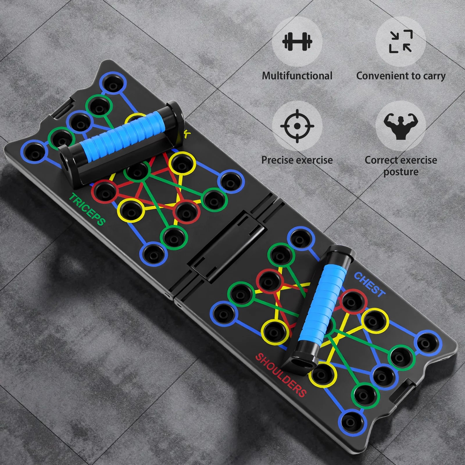 🏋️ Tabla de flexiones portátil, plegable y multiusos con asas y bandas de resistencia